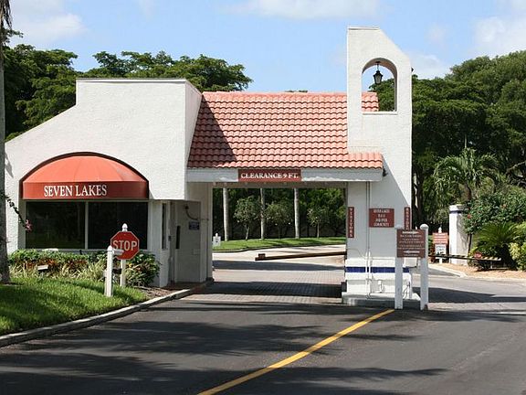 SEVEN LAKES! GATED GOLF COMMUNITY! GLEAMING REAL WOOD & TILE flooring flow thru the SPACIOUS living areas of this WELL MAINTAINED, REMODELED 2 BR / 2 BA, 2nd floor condo. Roomy 1064 SF home is being offered TURNKEY. NEWER STORM RATED WINDOWS. Kitchen REMODELED 2010 with REAL WOOD CABINETRY ~ PANTRY & YARDS OF COUNTERS! CEDAR LINED CLOSETS in both of the LARGE BEDROOMS with a WALK-IN FOR THE GUEST ROOM. Greenbrier floor plan. GOLF CART & COVERED SPACE for cart is INCLUDED! Seven Lakes is an award winning golf & tennis community for the 55+ active adult. The centerpiece of the community is the 18 hole executive golf course and it's one of a kind community center. 6 heated pools, 4 tennis courts, bocce, shuffleboard, bus transportation and trips, woodworking shop, billiards, craft rooms, card rooms and so much more are all included in your monthly fees. No green fees for the golf course, so golf as much as you want. Great location, surrounded by restaurants, shopping, & entertainment. Short trip to airport and beaches. This one is a MUST SEE! Please see Virtual Tour.