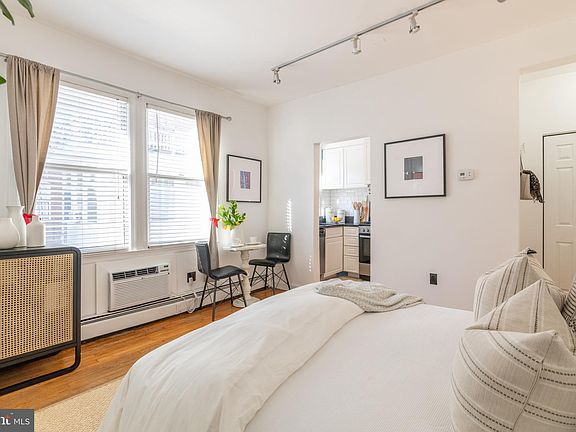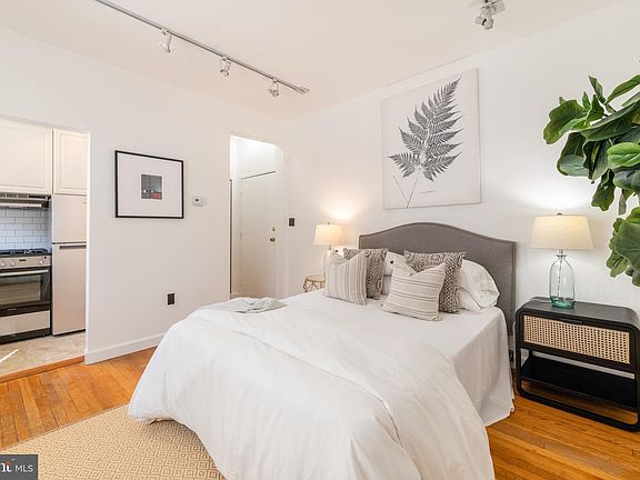 Fantastic pied-a-terre unit in DuPont Circle tucked away on a quiet street! This top floor studio has large windows and beautiful natural light. The smart floor plan makes for easy living, using every bit of space available. Perfect for someone who requires in-unit laundry and loads of closet space, this unit offers a large walk-in closet, a coat closet, and an additional bedroom closet! The beautifully renovated kitchen includes stainless steel appliances, new fridge, new range, new granite counters, new subway tile backsplash, and new kitchen floors. Building allows your furry friends too! Just North of Dupont Circle and a short walk to restaurants, grocery stores, shops, and public transportation, this location is truly unbeatable. You won't want to miss this one!