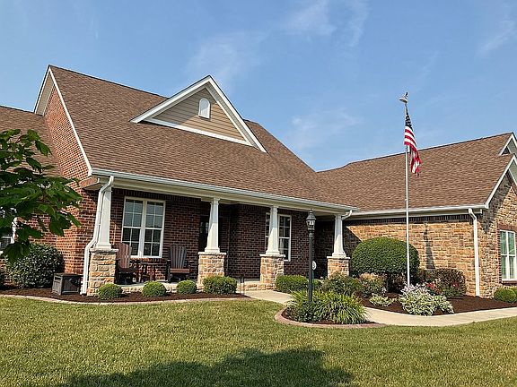 Luxurious custom built Craftsman brick & stone home in the New Palestine, Indiana area. Enjoy the peaceful rural setting and beautifully manicured lawn from the 31-foot front porch of this single-story home. You are welcomed by high ceilings and large rooms with hardwood floors throughout the main living areas. Enjoy everyday meals in the spacious kitchen featuring stainless appliances, a large walk-in pantry, breakfast bar, kitchen nook and open dining room. Amazing custom Amish cabinets, granite counters and custom blinds throughout the ENTIRE home! This 3-bedroom home with an additional office/study includes a second-floor unfinished storage area (37 x 11'9) with the possibility to transform it into a future bonus room. Relax in the grand owner's suite complete with a large walk-in closet, and private bath with dual sinks and custom tile walk-in shower (7'10 x 3'5). Entertain your friends outdoors on the 410 square-foot partially covered patio, complete with a natural gas Weber grill! The 3-car garage (40 x 24) with epoxy floors and access to the crawl space is any man's dream! Impeccable amenities include a lawn irrigation system, central vacuum system, domestic hot water return system, Bose lifestyle home entertainment system with surround sound and a water softener. Don't miss out on this captivating home! Schedule a private tour today! Call 317.371.6063