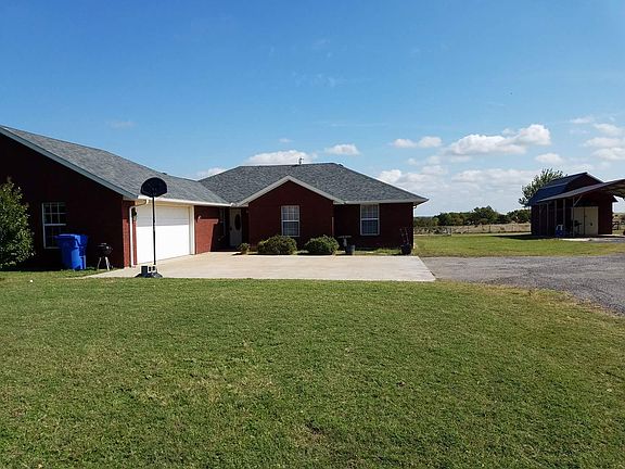 Beautiful 3 bedroom, 2 bathroom home. Located in Pumpkin Center halfway between Lawton and Duncan approximately. The lot has just shy of 3 acres. The house has a fireplace, master bedroom with master bath, 2 closets in master bedroom, shed/barn with covered carport. The house has a 2 car garage with a storm and saferoom. The kitchen has a new fridge and appliances are included.