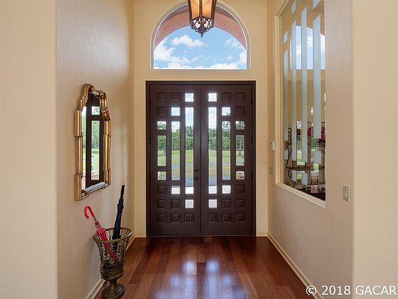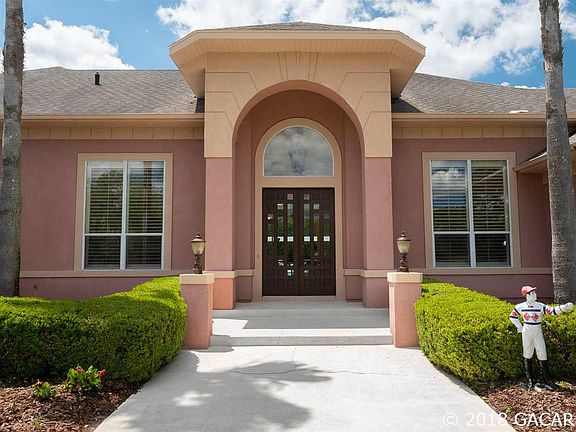 Beautiful home on 6.71 acres in desirable Hayes Glen. An estate style entrance gracefully welcomes to a circular drive where you will enter the grand foyer and immediatley enjoy lovely views of the pool and surrounds. This home has an updated kitchen with Electrolux stainless appliances including a convection oven, granite and cherry cabinetry and is open and adjacent to the spacious family room. Cherry flooring throughout main areas and laminate in all 5 bedrooms. Newer lighting in main areas and bathrooms are just a few of the other updates. The master suite, foyer, kitchen, breakfast nook and family room all overlook the amazing lanai, salt system pool and pergola creating a welcoming resort ambiance. The home has a 2 way split bedroom plan and includes 5 true bedrooms, (the 5th has a walk in closet and full bathroom and is currently used as an office). Charming Hayes Glen is an excellent and convenient Gainesville location.