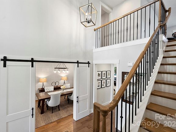 Welcome to the epitome of modern farmhouse luxury. This stunning residence has been meticulously upgraded to perfection both inside and out! Gorgeous, white kitchen with solid surface tops, custom backsplash, massive center island, Wolfe and Sub Zero appliances, opens to great room with FP, built in shelving and 2 sets of panoramic doors to bring the outside in. Main level primary and guest suites, DR w/rustic shiplap accent wall & barn door. Upper level features 3 generous BR's, each with en suites & custom closets, large bonus room (or 6th BR) and generous UL Den. Spectacular outdoor oasis featuring covered back porch w/retractable screen, heated salt water pool and spa, fire bowls, fire pit and outdoor KT in a covered cabana which leaves nothing to be desired. New landscape lighting, beautiful fixtures, 8' doors on both levels, and plantation shutters throughout. Incredible location, walking distance to highly rated Cox Mill schools and the new planned JE Ramsey park! Welcome Home!