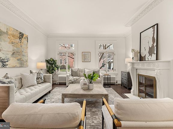 Sited in the prestigious Kalorama Triangle neighborhood of Northwest DC, 1828 Wyoming Ave NW is a quintessential 1912 Federal semi-detached Townhouse offering a beautiful blend of classic architecture, modern amenities and unique, yet timeless, design. It sits high on Wyoming Avenue with incredible southern views of the Washington Monument and Capitol Building. Meticulously maintained with updated baths, the 5 Bedroom, 4 Full Bathroom, 2 Half Bathroom residence showcases impeccable millwork, gleaming hardwood flooring and light-filled living spaces across 3 finished levels and 6,704 total square feet. Classical charm meets modern luxury as high ceilings and beautifully crafted crown moldings welcome you to the Main Level’s formal living spaces. Natural light floods the generous Living Room through oversized transom windows, highlighting the wood-burning fireplace’s millwork mantel. Large entryways lined with decorative trim lead to a spacious Dining Room, complete with modern wainscoting detail, the gracious Eat-In Kitchen, and Laundry Room. An expansive and fully fenced rear Terrace is accessible from the Kitchen and offers an ideal place for large scale gatherings and entertaining. A grand staircase ascends to the Upper Level’s informal Family Room showcasing stunning built-ins, oversized windows and a large fireplace with brick surround. A perfectly appointed balcony overlooking an enviable Northwest DC cityscape is accessible from one of the Upper Level’s two Bedrooms. Perched on the Top Level, the sprawling Primary Suite boasts an organized Walk-In Closet and a spa-like en-suite Bath complete with dual vanities, soaking tub and walk-in slate shower, creating a luxurious oasis within the home. Two additional Bedrooms, each offering updated en-suite Bathrooms, are located on the Top Floor and round out the guest amenities this townhome offers. The unfinished, walkout Lower Level provides ample storage space or the perfect setting for a Recreation Room, Exercise Room, and more! An attached 2-Car Garage is accessible from the Lower Level, a rare offering in one of DC’s most urban neighborhoods.