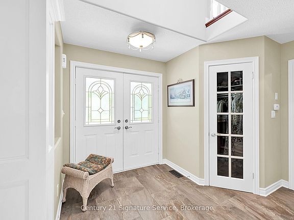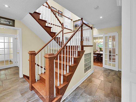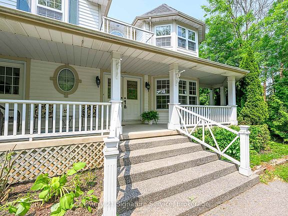 Welcome to an extraordinary opportunity in one of Canadas most sought-after destinations. Seated in the Niagara Escarpment on a 1.55 acre lot, enjoy the tranquility of historic wine country in beautiful Niagara On The Lake. You will be greeted by lush greenery and the tranquil ambience Niagara is known for. This home features 2,731 sq. ft, on main and upper levels with 5 bedrooms, 4 baths, enclosed Sunroom off kitchen, Balcony off Primary and upper hallway, finished Walkout basement to a covered patio area, all on an expansive 400' lot. The back yard is enhanced with a greenhouse for those avid gardners & a lovely sitting area adorned with a Pergola. Total living area of 4,100 sq. ft over three meticulously finished levels, this home exudes character and functionality. Large eat-in kitchen is a chef's delight with SS appliances, Granite counters, double SS sinks, an abundance of counter space and walkout to sunroom. Large dining room with French doors, overlooking view of the sunroom and back yard, perfect for entertaining. Finished lower level with additional bedroom, massive recreation room with gas fireplace, with walkout to patio and expansive back yard with potential IN-LAW SUITE. Gas line for BBQ hookup.This custom home was built by the current owner in 1999 and is the first time being offered for sale. Circular driveway offers parking for multiple cars. Whether you're envisioning your next family home, or a lucrative investment of a thriving B&B, the versatile multi-level floor plan offers private bedrooms and comfortable living areas for both guests and owners. This beautiful home has been meticulously maintained, and is now ready to welcome a new family to make new memories. Porcelain tile in kitchen, hallways, laundry room, and bathroom. Sunroom was enlarged & enclosed when the roof was replaced. Separate water pipes installed, one normal for household and a second pipe to feed water to the 3 external taps in order to bypass, i.e. for water conditioner