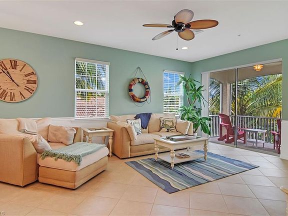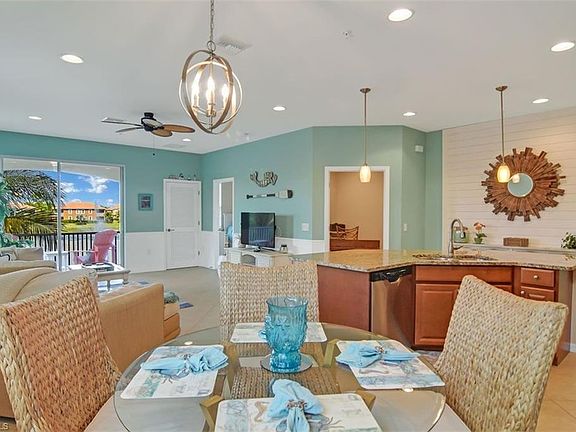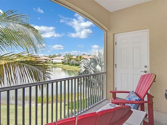 Poolside condo offers a life of leisure.Perfectly positioned right next to the pool is this beautiful and private second-floor condo. Shiplap adorns the walls to create a coastal feel while views over the lake and pool ensure absolute relaxation. Inside, the layout is spacious, with an abundance of natural light illuminating the living areas. Open-plan, there is plenty of space to enjoy, whether you want to host friends or simply relax with a good book and a coffee. The kitchen features a suite of quality appliances, a center island with a breakfast bar, and an open concept design that embraces both the dining area and the living room. Here, slider doors open out to the balcony with sweeping views over the glistening lake and pool. There are three bedrooms, including a den, plus two bathrooms spread throughout the 1,525sqft layout. You will live only steps from the community workout center and resort-style pool and just minutes from Estero, Coconut Point shopping, and local beaches.