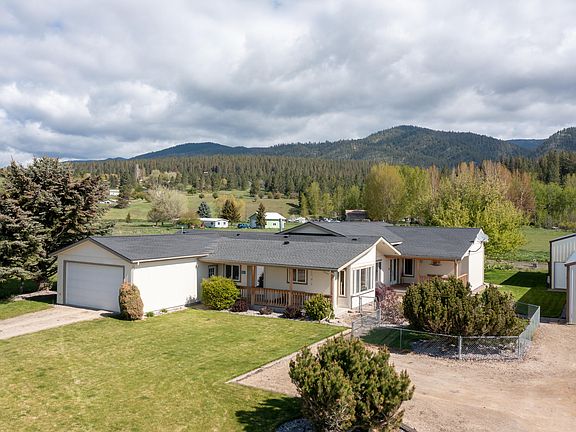 The owners have spent decades curating this property, with a spacious single-level home sitting on 5.46 fenced acres, 24' x 36' barn and 2,952 square foot shop. In 2008 the owners added a massive 24' x 30' great room with 10' walls vaulting to 16', floor to ceiling rock fireplace, and attached 16' x 20' media room. The home features an open kitchen and living room with hallway leading to the three bedrooms, two baths, laundry, and finished garage. Primary suite includes full bath and walk-in closet. 40 GPM well & the property includes stock water rights from Roman Creek and irrigation water rights from Frenchtown Irrigation Ditch. Shop includes wood stove, shelving, and air compressor. Movable auto lift is negotiable. Frenchtown School District is highly regarded. Listed by Aaron Pagniano.