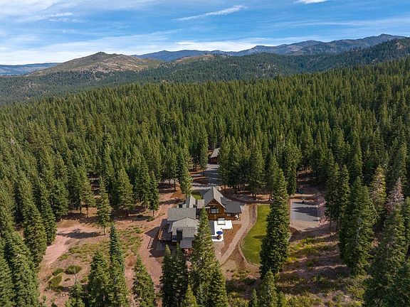 Introducing Juniper Creek Estate, a remarkable retreat nestled on 20 pristine acres in the serene embrace of a forested bowl beneath Martis Peak, located in the lower Juniper Creek Ranch area. Only a 20-minute drive from downtown Truckee and a convenient 30 minutes to the Reno Airport, this secluded sanctuary offers a private mountain playground, removed from the hustle of resort crowds. For the outdoor enthusiast, this property offers unparalleled access to exceptional recreation year-round. Right outside your door, you'll discover an extensive trail system ideal for hiking, biking, off-roading with recreational vehicles, horseback riding, and snowmobiling, all set against the stunning backdrop of the surrounding national forest. Additionally, the property is perfectly suited for the equestrian, as the property is zoned for horses. Located within 40 minutes from five different ski resorts and numerous lakes, this is perfect for water lovers and adventure seekers alike. The possibilities are endless! Crafted with meticulous attention to detail and boasting timeless natural finishes, this estate exemplifies high-quality craftsmanship designed to endure the test of time. Expansive windows and lofty ceilings flood the interiors with abundant natural light, while modern elements of stone, wood, and glass create inviting spaces that seamlessly blend with the surrounding beauty of the outdoors. Recently completed in 2021, this exceptional property encompasses a total of 5,208 square feet of combined living space, featuring seven bedrooms and five and a half bathrooms. The main residence spans 3,652 square feet and encompasses a grand great room, a spacious kitchen, a dining room complete with wine storage, five bedrooms, and four and a half baths. In addition to the main house, there is another 3,708 square foot "barn" that consists of a 2,152 square foot RV and sports garage, and 1,556 square feet of living space that offers its own great room, kitchen, den, two bedrooms, and a bathroom. The barn also includes its own fire pit, hot tub and RV Pad with hookups. Outdoor living is equally enticing, with inviting porches and patios perfect for entertaining or unwinding with a good book. Enjoy a heated, covered outdoor kitchen, dining and living area, two outdoor fire-pits, two hot tubs, a sauna, sports court, and a play structure. Boasting extensive infrastructure and thoughtful amenities for seamless year-round living, notable features include hydronic heated floors, whole-house generators, a security system, extensive landscaping with five acres of forest management in a fire-wise community, and a private paved driveway. Experience the epitome of secluded, luxurious mountain living combined with easy access to the amenities of the Truckee/Tahoe basin and Reno area. Discover more about this extraordinary property and its features at www.JuniperCreekEstate.com.