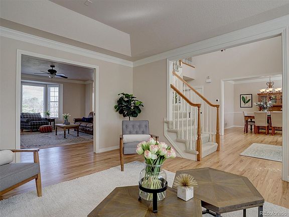A rare opportunity to own a serene retreat and truly enjoy the Colorado lifestyle. This gorgeous luxury home located on a cul-de-sac in Homestead at The Farm, is one of the very few 1 Acre properties in the area, with Eastern horizon views and direct access from the backyard to the Piney Creek Trail, connecting to the Cherry Creek Trail system. Enjoy the daily sunrise and view of the park-like backyard from throughout the home including the Primary Suite, Main Floor, and Walk-out finished basement, as this home truly features the view and tranquility of nature. Inside, you’ll find high-end finishes and ample space throughout. With a gorgeous kitchen offering a gas range, double oven, island with bar seating, open to living and dining space, everyone can be part of mealtime. Main floor bedroom provides peaceful views and a ¾ bath, making it an idea working space or guest suite. Head downstairs to play a game of pool, have a cocktail at the bar, BBQ on the walk-out patio, or watch the Big Game! When it’s time to call it a night, the Primary Suite overlooks the Trails and ranches & has a frameless oversized shower, soaking tub, and Walk In closet straight out of a TV Show. Upstairs offers 3 additional large bedrooms, 1 with a private ensuite full bath, the other 2 with private vanities and adjoining necessities. A 1 acre residential lot with it’s own park-sized backyard, plenty of space to garden, throw the ball/frisbee, have a volleyball game, all with DIRECT access to the Trail systems! Amazing location and neighborhood: walkable via miles of manicured sidewalks to 4 different playgrounds, Homestead Recreation Center & Pool, neighborhood Tennis & Pickleball Courts, Trails Rec Center with Pool & Skate Park, top rated schools in Cherry Creek School District, 20 mins to Denver Tech Center, 30 mins to Denver International Airport, and 40 min to Downtown. Can’t visit in person? More Info, 3D Tour & details for a Video Showing at www.18288ECaley.com