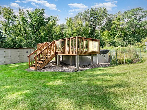 Huge cement patioVaulted sunroomPrivate overlookMain level bedroomHoney crisp apple treeMature landscaping