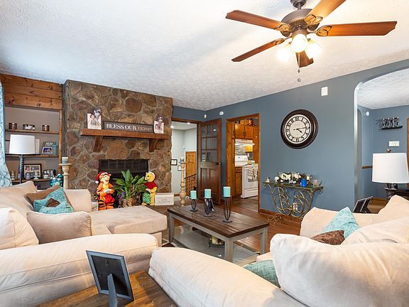 - Fireplace features: Stone, Living Room, Wood Burning