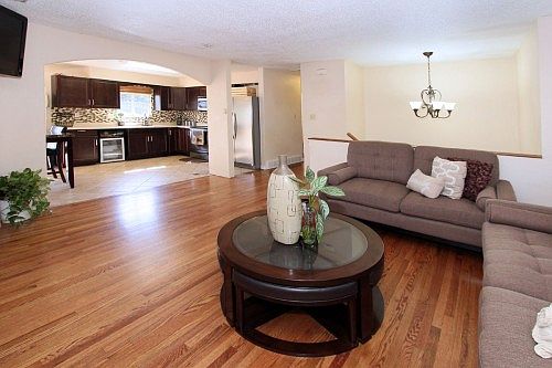 Nicely updated 5 bedroom home located on a large corner lot. The kitchen features tile backsplash, upgraded cabinets with pullout drawers, stainless steel appliances and tile floors. The kitchen opens to the large living room with hardwood floors. The kitchen also features a dining area with a walkout to the backyard deck. Included are very nice window treatments and upgraded lighting. The backyard with a large deck and sitting/play area is perfect for entertaining. Once you step into this home you will love it.