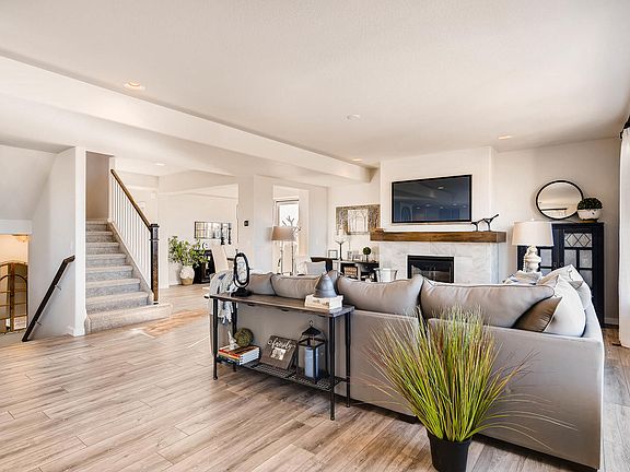 Ready in April. Monarch 2-story with 3 car garage in Flying Horse Palermo. 5 bedroom plus loft and study, 5 bath home with garden level basement. Kitchen features charcoal finish cabinets with crown molding. Quartz counters and stainless appliances with gas cooktop. Master includes expanded shower and barn door. Mud bench at owner's entry. Includes gas fireplace in great room and air conditioning. Finished garden level basement includes 1ft. taller ceilings, wet bar, plus 1 bedroom, 1.5 bathrooms and expanded recreation room with second gas fireplace! Exterior living offers covered deck.