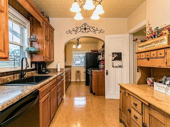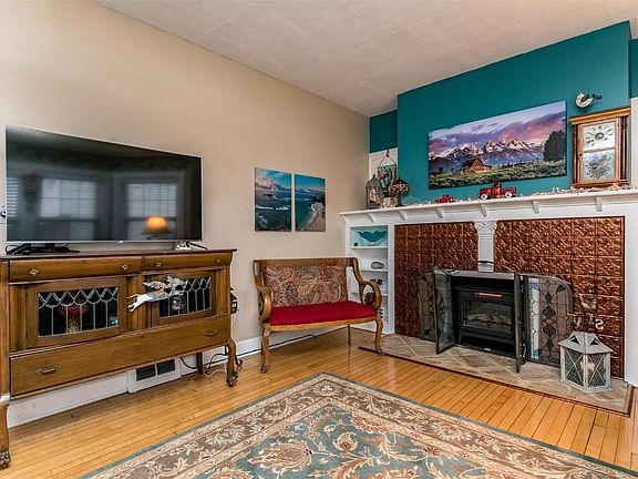 Beautifully maintained early 1900's home with many updates. Maple floors on the main floor, large living room with electric fireplace that does heat. Formal dining room with a bay window for lots of natural light. Updated kitchen with bamboo flooring, a 2nd bay window, black appliances (gas stove), plenty of counter space & refaced cabinets. The 3-seasons porch is perfect for a Summer gathering or a cozy space to read in the Winter (southern exposure). Upstairs features maple flooring, has two bedrooms including the huge primary bedroom with walk-in closet, updated full bath with jetted tub, vanity with granite top and ceramic tile floor. The third floor has beautiful oak flooring, a large third bedroom and lots of storage. The spotless basement has the laundry or make the rec area into a workout room. Toilet in LL. Yard is filled with of perennials, a Pergola and stone patio. Two parking spaces besides the garage too!