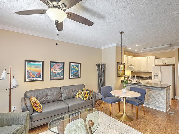 This is a meticulously maintained end unit with tons of natural light and privacy. As you enter the home there is a bright living room and open kitchen area. The living room has double glass doors that open to the balcony. The kitchen has bar seating that is perfect for entertaining. There is also a bedroom and full bathroom on the first floor. The first floor has LVP throughout the living areas and the bedroom. Upstairs you will find a large master bedroom with a nice sized closet and bathroom. There is also an additional bedroom with an ensuite bathroom along with the laundry area. The upstairs has newer carpet with an upgraded carpet pad. This home has a 31 foot enclosed garage and 12 foot covered garage area.