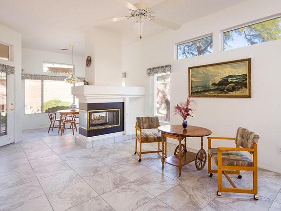 Sun City Oro Valley - Well maintained/move in ready 2,046sf 2BR/21/2BA+den Mountain View model w/newer carpet & tile. Kitchen is at center of home as ultimate gathering place w/wall oven & microwave, smooth top GE profile cooktop & breakfast bar. Brkfst nook, fam room & kitchen all enjoy a three-way fireplace. 2-10 certified Trane HVAC system. Fresh Ext. paint. Laundry room w/washer dryer, utility closet, laundry sink & cabinets. MBR has bay window, soaking tub, separate shower, double sinks, glass block window & large walk-in closet w/cedar wood panel. Split bedroom plan. 2nd BR has its own bath. Front courtyard w/double door entry w/security screen doors. Fully fenced backyard w/beautiful shade & tangelo tree. Spacious two car garage. Backyard w/220v outlet for hot tub.
