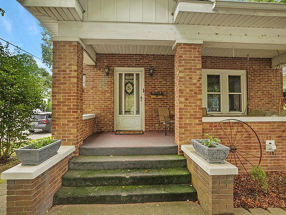 Check out this charming 2-bedroom, 1-bath home located in the heart of Evansville's West Side. The spacious corner lot is shaded by mature trees offering lovely curb appeal. A curved sidewalk leads you to the covered front porch where you can sit and sip your morning coffee. Step inside the home and you are greeted with historic charm and modern updates, with engineered hardwood floors in the living room, which opens to the formal dining room. The kitchen offers lots of storage space and island seating. Two bedrooms and a full bath complete the home's main level. The unfinished attic provides an abundance of storage space and could be finished for added living space. The basement is home to the washer and dryer connections and even more storage space. Outside is a fully fenced back yard, which opens to the detached garage. This home is sure to impress!