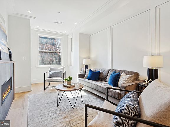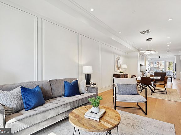 Apartment 3, 1829 Kalorama Road, is a stunning three-level condo neatly incorporated into a grand Kalorama row home. Adorned with high ceilings, tons of natural light, and high-end luxury finishes. The home exudes care and quality craftsmanship creating a pleasing environment to all your senses. The main floor is grand and open including a living room with a stylish custom fireplace, a large dining space, den, and powder room with Restoration Hardware fixtures. The expansive chef’s kitchen is the heart of this level, featuring Binova cabinetry, Miele appliances, leathered Quartz countertops, Waterworks fixtures, and a custom pantry. Large windows maximize the main levels natural light that reflecting off the 9” wide plank white oak flooring and custom millwork. The deck, off the main level den, is the perfect space for both entertaining and relaxing. Private stairs off the deck lead to two separately deeded secure parking spaces, wired for electric vehicles. The primary bedroom, located on the second floor, is king sized with millwork and sconces and two walls of windows for natural light. The spacious Kico cabinetry closet leads to the spa-like primary bathroom, featuring heated flooring under large format Travertine stone, an oversized shower with multiple shower heads, a free-standing soaking tub, Waterworks fixtures, and custom Binova cabinetry. Also on this floor is the second bedroom, with a custom closet and ensuite bathroom, featuring a soaking tub, marble tile, and waterworks fixtures. A conveniently located laundry room, with full size side by side laundry machines, custom storage, and creating a natural separation from the primary suite. The third floor features a spacious bedroom with a custom walk-in closet and ensuite bathroom with a glass shower, marble tile, and Waterworks fixtures. A light-filled media room with a wet bar, and floor-to-ceiling windows, leads to your private roof deck with nearly 370 square feet of entertaining space with a custom ShadeFX pergola. Solar panels on the upper roof ensure low utility costs. Located near Michelin-star restaurants, numerous grocery and shopping options, and the beautiful Kalorama Park at the end of the street, 1829 Kalorama Road is a city dweller's dream.