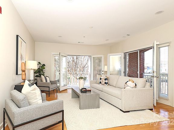 Beautiful, updated two bedroom two bath condo in the heart of Dilworth. The open floor plan with floor to ceiling windows fills the living area with sunlight . Freshly painted, new carpet in the bedrooms, updated light fixtures, and new current updated countertops make this home move-in ready. Enjoy alfresco dining on the wraparound terrace with views of uptown. Off street gated parking area.Two blocks to Atrium hospital, a short trip to Southend and wonderful walkability to all that Dilworth offers with shops, bars, and restaurants. This unit is not to be missed!