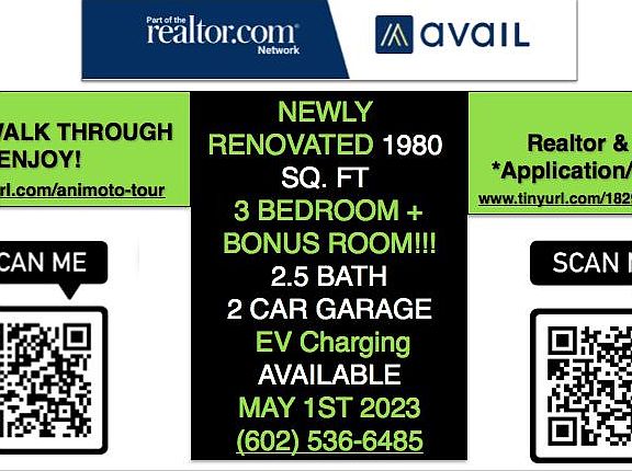Location Location! 3 Bed Plus Den, 2 and 1 half Bath. 2 Car Garage. Available May 1st. VIDEO HOUSE TOUR QR code and Link can be found in the photos. Spacious and quiet, luxury townhome in desirable Stoneridge Community. A stones throw from a beautiful walking park with playground and walking distance to the Stoneridge bar & restaurant and golfing community center. Townhome is newly renovated in 21/22. Brand new neutral paint walls ceilings doors. New waterproof light oak wood look vinyl flooring throughout bathrooms and living room, master, tiled wet areas, not shown in pics no carpet on floor 1. Big quartz farm sink, LED lighting and matching granite throughout all bathrooms and kitchen. Large granite island in bright spacious kitchen with butler bar and serving area plus dining area for table, all newer stainless steel appliances. Fantastic living room for entertaining with soaring 20 foot ceilings and large windows for natural light and star viewing. Spacious primary bedroom on first floor with private, large ensuite aster bath, dual vanities, granite, and walk in closet plus additional vanity area. Primary and laundry plus 1/.2 bath on first floorFull two car garage good for EV charging. Spacious front patio for your furniture and morning coffee views of park, with another backyard patio area semi-enclosed and private to use how you like. Upstairs you'll find two large bedrooms with closets and stunning mountain views. PLUS a good sized additional office/flex/den with mountain views. Upstairs has a full bathroom with granite and shower tub combo with storage. New thermal pull down window coverings. Maximum Soundproofing between walls was done so it's extremely quite. LEASE TERMS **Property is currently occupied so please do not disrupt them by knocking or walking on the property.12 month lease term. All renters 18 and older must have application ran and all children/minors listed on lease. No Sublet allowed. Renters insurance required. No Smoking/Vaping/Parties/Drugs/College Students. Tenant agrees to follow all community rules and bylaws. Good credit and references required. Must pass background and income check verification. Nonrefundable Cleaning fee $250. Small-medium-dogs cats ok but no dangerous breeds) Pets must be house potty trained: monthly pet fee $50 first pet, $80 for two pets. Pet Deposit $350. Rent includes these added services and paid utilities: Monthly Yard work & Landscaping (Front and back plants & tree and irrigation maintenance, trimming, plus leaf blowing and rock sweeping), professional pest control monthly services, access for all on lease to use fitness center, pools & amenities, and monthly trash utility.