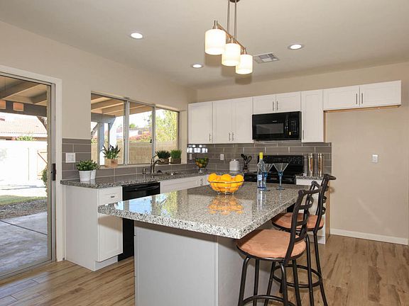 Back on Market. Beautifully remodeled 3 bedroom, 2 bath home with Den/office in Chandler. Designer updates include NEW gourmet kitchen with white cabinets, granite countertops, NEW appliances and large center island. Fully remodeled with gorgeous wood like tile flooring and custom sliding barn doors to bonus room/office. EVERYTHING is new and custom designed. Interior doors, baseboards, light fixtures, bathrooms, etc. A must see. Huge great room and vaulted ceilings make this home light and bright. Exterior painted in modern colors and complimented with new desert landscaping. Spacious and private backyard with mature fruit tree, grass and palm trees. A quality updated home with new A/C ducts and vents, new electrical outlets, newer roof, nothing overlooked. Welcome Home!