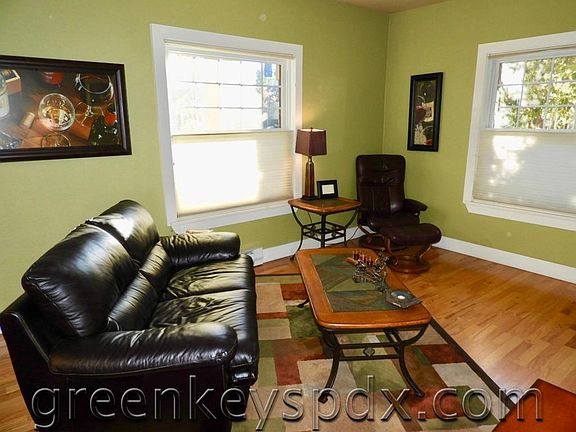 Fully furnished Rental: ALL UTILITIES INCLUDED, even WIFI. 3-Month Minimum Stay Required. Address: 1829 NW Lovejoy #205, Portland, OR 97210 1 bed 1 bath 573 sqft Live the quintessential Portland lifestyle in this beautifully furnished, historic building located in the Alphabet District within walking distance of the Pearl and Good Samaratin Medical Center. The condominium's central location is ideal for a working professional or someone on a long-term visit to Portland. Walk outside the front door to enjoy trendy coffee shops, restaurants with take-away service, bakeries and bars, and easily accessible public transportation. Take the Portland Streetcar or bike 5 minutes to Downtown Pioneer Square and hike the lush forest trails to explore the magnificent Rose and Japanese Gardens. This fabulous second-floor corner unit overlooks Lovejoy Street and is flooded with natural light and includes custom single-cell black out shades to maintain privacy when desired. It has several original historical details, including hardwood floors and exposed brick walls. For convenience and style, the unit is outfitted with stainless steel kitchen appliances, dishwasher, electric range and refrigerator. Furnishings include a leather couch, desk, and two TVs. Utilities include basic cable and fast WIFI. This condo is 100 percent move-in ready to start your authentic Portland experience. Utilities: Included in rent. Laundry: Building-shared utility room with washers and dryers Bikes: Bike lock-up area This property is managed by Green Keys Property Management LLC. Application fee: $45 per adult Applications will not be considered complete until the online application has been filled out completely and the application fee has been received. Move-in Costs: First month's rent plus a refundable security deposit that is $40 to $60 less than rent Lease: 12 months No Smoking. Pets: Pet may be accepted with owner approval, $30 pet rent and $250 pet deposit. Steps: 1. Take the video tour by going to the Green Keys PDX site and clicking on the Our Listings tab. Find the address at 1829 NW Lovejoy and click the blue Video Tour button. 2. If you want an in-person tour, contact Green Keys to arrange a viewing. Screening criteria: minimum monthly household income of 2.5 x rent; minimum credit score of 650. Lease: 3-month minimum. Utilities: All included.