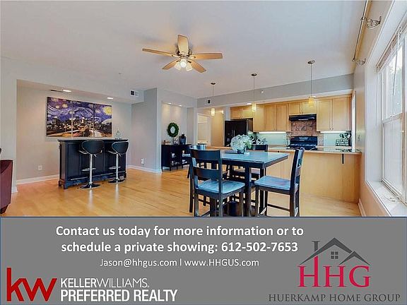 Welcome to this wonderful 2 bedroom 2 bathroom condo in Minneapolis! This light-filled unit features an open-concept layout with large windows and beautiful wood floors! The kitchen offers breakfast bar seating, updated appliances and plenty of cabinet and counter space.You will love the huge master suite with walk-in closet and private bathroom. Unit provides a spacious laundry room and tons of storage space. Includes one garage stall, plenty of free street parking and intercom system for added security. Awesome location within walking distance to parks, lakes, restaurants and entertainment with easy access to downtown Minneapolis! Great home, inside and out!
