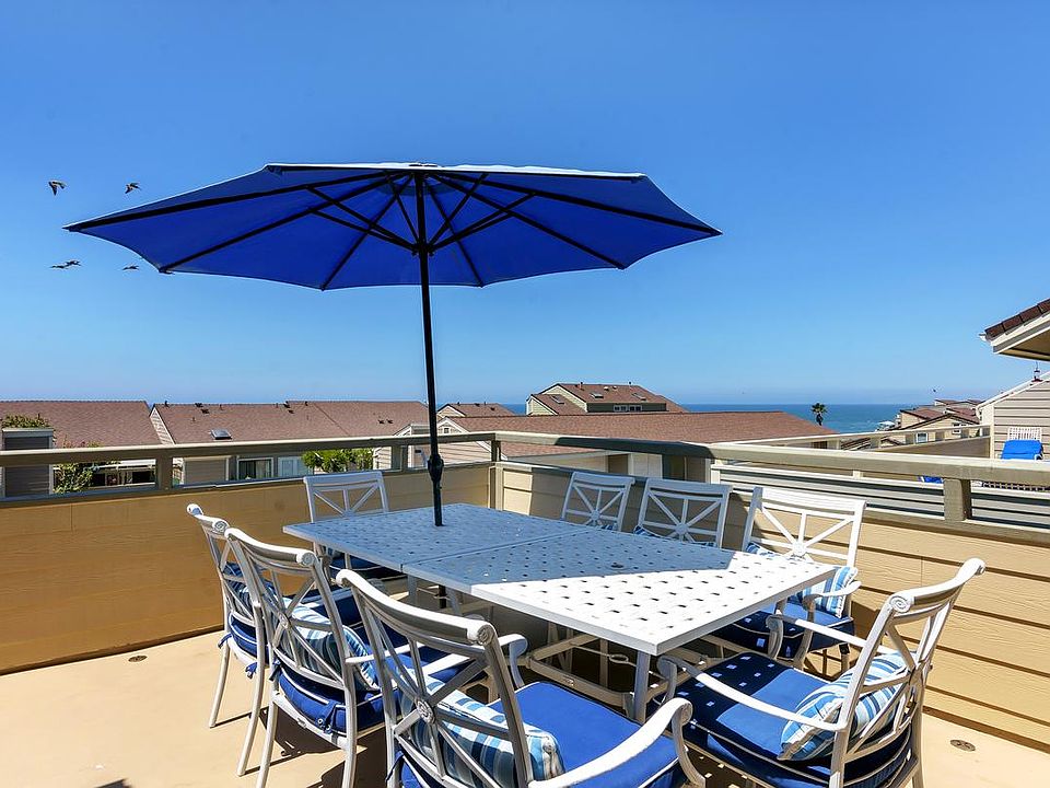 FURNISHED VACATION RENTAL. Available now until June 1, 2025. Ocean view two bedroom, two and a half bathroom townhome. King bed in the master, queen and single bed in the second bedroom. There are three televisions located in the following rooms: Living room, master bedroom, and second bedroom. This property has a large ocean view deck with BBQ, table, and chairs. Back patio off the master bedroom. Washer and dryer in the home. Enclosed garage. Beach towels, chairs, umbrella, and boogie boards are provided. Enjoy the amenities of Seabluffe: two pools, one heated year round with a hot tub, four tennis courts, four pickleball courts, half basketball court, child play area, and private stairs to the beach. The maximum occupancy is 5. WiFi. No Pets. FURNISHED VACATION RENTAL. Available now until June 1, 2025. $5500 per month for rent and $500 per month for utilities. There are one time move in fees of $620 and refundable security deposit of $5500.
