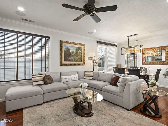 Welcome to this beautifully updated two story home, where modern comfort meets timeless style, located in the heart of Damonte Ranch. From the moment you step inside, you'll notice the thoughtful upgrades and attention to detail that make this property truly stand out. At the heart of the home is a fully remodeled kitchen, designed for both everyday living and effortless entertaining. It features brand new whirlpool appliances, wine cooler and sleek finishes, including refinished soft-close cabinetry, granite countertops, custom backsplash, walk-in pantry, and a layout that brings function and style together seamlessly. Just beyond the kitchen, you'll find the home's showpiece: a stunning custom marble fireplace that serves as the focal point of the main living area. It anchors the space with elegance and warmth, creating an inviting atmosphere perfect for gathering with family and friends. Just right off your great room, is a custom patio with wrap around paver patios, built-in raised garden beds and artificial turf; perfect for your use year-round. Upstairs, the home continues to impress with its spacious layout, offering room to unwind, recharge, and make the space your own in a separate loft. In addition, you will find the oversized primary suite that features an en-suite highlighting a walk-in shower, separate garden tub, dual vanities, and a spacious walk-in closet. Across the loft, you have two sperate bedrooms and a full bath providing a very functional floorplan. A highlight you can't miss is the high-tech data wiring throughout the home! In-ceiling speakers are placed throughout, along with pre-wires for wall mounted touchscreens. The home also includes WiFi access points on each level and fiber optic lines have been brought directly into the home. In addition, each TV is wired for Data/4K prewires with all AV wiring terminating centrally. This property blends modern upgrades with classic charm, giving you a home that feels fresh, refined, and truly move in ready.