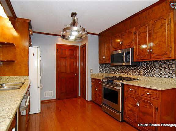 Great home with updated eat in kitchen with a bay window, new SS appliances including a 5 burner gas stove, dishwasher and built in microwave, new hardwoods in most rooms. All interior walls are insulated. There is a central vacuum system and a whole house, natural gas generator. Most rooms have plantation shutters. Large laundry/mudroom with cabinets and granite counters. Family room with a masonry gas log fireplace and built in cabinets and bookcases. Master bath with his and hers closets, private bath with a double vanity and hardwood floors. There is a new 12x16 deck. There is a 16x20 shed in the backyard and a storage/workshop in the garage.