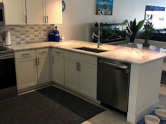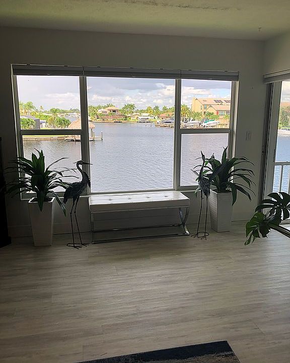 AMAZING VIEWS and awesome Location, in the desirable Beach Parkway area of the SE Cape, two Canals from the Caloosahatchee River. Dock your Boat on your own Dock steps from your unit and Sail Directly to the Gulf of Mexico. No dock lease, it comes with the unit! This beautifully renovated condo has a Split Bedroom layout to maximize your privacy and it is located in this quiet, well-maintained community. Fully updated Kitchen and Baths with Stone Counters and Stainless Steel Appliances, large Laundry room with tons of storage, Walk-in Closet, lots of Storage both inside and out. 2 Bedrooms plus a den or office! New Luxury Vinyl Plank throughout unit and porcelain tile on waterfront lanai. Custom Blackout Shades and Plantation Shutters on windows and sliders. Covered Parking steps from your front door. Building has new Roof 2018, A/C 2016. HOA Fees are $535/mo. Great Location off Beach Parkway, walk to Jaycee Park, close to dining, shopping, bridge to Ft Myers and the Beaches. One of the few pet friendly condo communities in the SE Cape. Furnishings are not included but negotiable. Call Todd at 239-314-9997 for a showing or more information. Also available for sale 2005 Glastron GS 279 Cabin Cruiser $25,500.