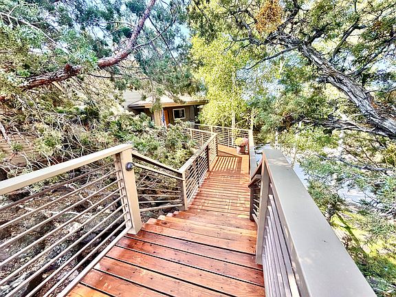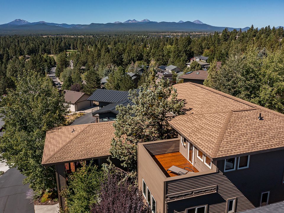 Perched high atop Golden Butte this exceptional custom home showcases sweeping southern vistas spanning from Pilot Butte to the Cascade Mountains. Thoughtfully integrated into the hillside it blends timeless Northwest architecture w/ meticulous craftsmanship. An expansive front deck complete w/ a striking lava rock waterfall sets the stage for quiet relaxation or Iively entertaining. Inside the welcoming living room is framed by picture windows & a dry stack wood fireplace w/ gas assist flowing seamlessly into a chef-inspired kitchen w/ a generous island & open dining area. A private covered deck off the kitchen invites year-round enjoyment. Comfort is assured w/ radiant floor heating, central AC & furnace. Vertical grain fir trim & doors add warmth throughout. Each level includes its own bedroom & bath, while the top-floor primary retreat offers 180-degree views, spa-like bath, walk-In shower, private deck & ample closet. Dual driveways & a 2 car garage provide privacy & convenience.