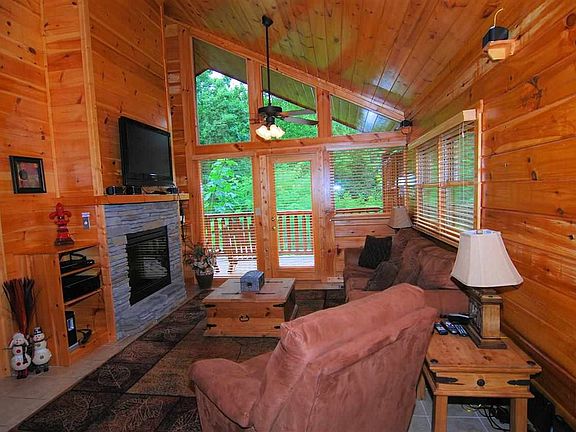 WELL-MAINTAINED CABIN WITH LOTS OF UPGRADES!! This beautiful cabin is just minutes from the Parkway in Pigeon Forge with access to both main roads and back roads into town. The open floor plan lets lots of light stream in from the wall of windows in the living area which features a stone fireplace, surround sound system, and towering cathedral ceiling. The fully-equipped kitchen features stainless appliances and lots of cabinets & counter space great for preparing a nice home-cooked meal. There is a computer nook in the hallway between the bright master bedroom with lots of windows and the full bath with whirlpool tub and even a towel warmer! Outside on the deck you will find lots of privacy, a steamy hot tub, and even speakers to add your own background music to this perfect little space to get away from it all. Don't let this one get away!
