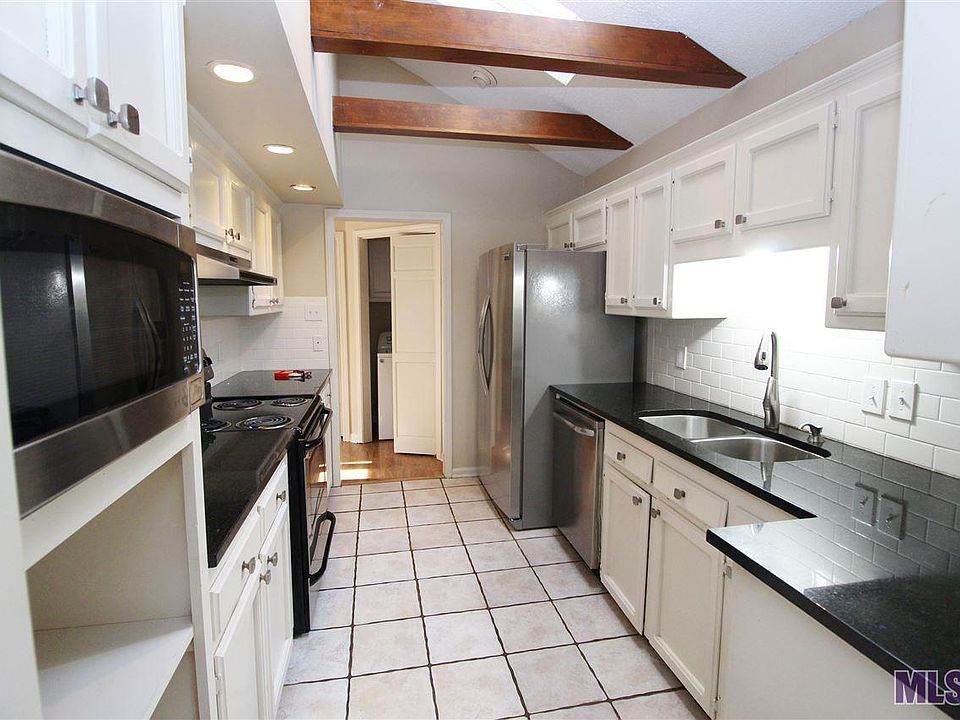 DID NOT FLOOD! Recently RENOVATED 2 Bedroom 2 Bath plus STUDY Garden Home. Kitchen features SLAB GRANITE countertops, subway backsplash, & STAINLESS APPLIANCES. Beautiful WOOD LAMINATE floors in Bedrooms, Dining Room and Hallway. BRICK FLOORS in Study. Both Bathrooms UPDATE with SLAB GRANITE counter top , fixtures and mirrors. NO CARPET. NEW roof installed 2017. NEW water heater installed 2017. 2 car garage. NEW gutters installed 2017. OWNER AGENT