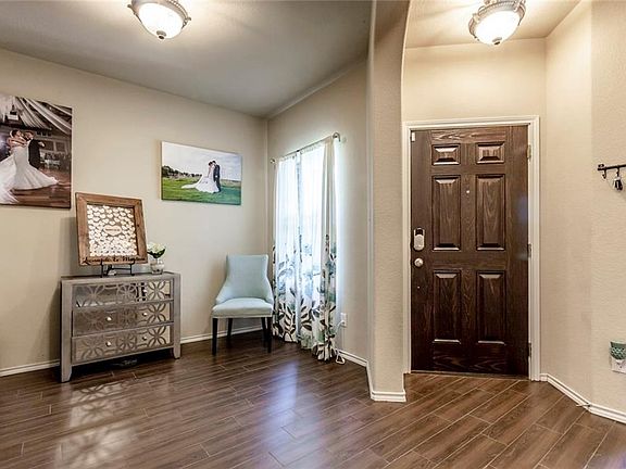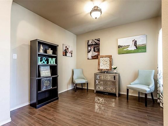 Welcome home, this is the one you have been waiting for! Single story charmer that is with 3 generous sized bedrooms plus a flex room so can be used as office (study)or formal dining room, 2 full bathrooms, and open floor plan. You will love the wood looking ceramic flooring in the living and dining areas, and the nicely appointed kitchen, with gas range and upgraded granite counters,and large corner pantry. Out back you will find a nice sized covered patio and a large grassy yard,full gutters and sprinkler system. This neighborhood is conveniently located just minutes from Alliance Town Center. Walking distance to community pool!