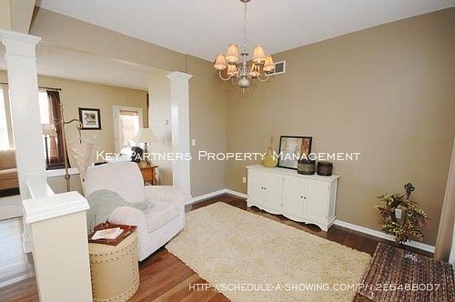 This open floor plan is a great use of space! The eat-in kitchen has a pantry, large island, stone backsplash, and opens up to the back deck area making outdoor entertaining a pleasure.There are hardwood floors and neutral paint throughout. The kitchen has tons of cabinets, a granite topped island, stainless appliances and brand new granite countertops!The formal dining room has a half wall creating an open feel.There are 4 bedrooms and 3 1/2 baths! The master suite has a wall of windows and vaulted ceiling as well as a double vanity, and a large walk-in closet! Convenient main floor laundry/mud room. There is a finished basement with a 4th bedroom, a full bathroom and a home theater area that has a HDMI cable and power cord already installed! Great fully fenced back yard. Don't miss out on this well maintained move-in ready home! Dogs OK. Cats OK. Refundable pet deposit and owner approval required. KPPM cannot be responsible for inaccurate or missing information when listed on a third party website. Pets are accepted with a refundable deposit and owner approval. The home's features could be slightly different or updated. Please schedule a showing or check with KPPM to confirm details.Dogs ok. Cats OK. Refundable deposit required by owner.