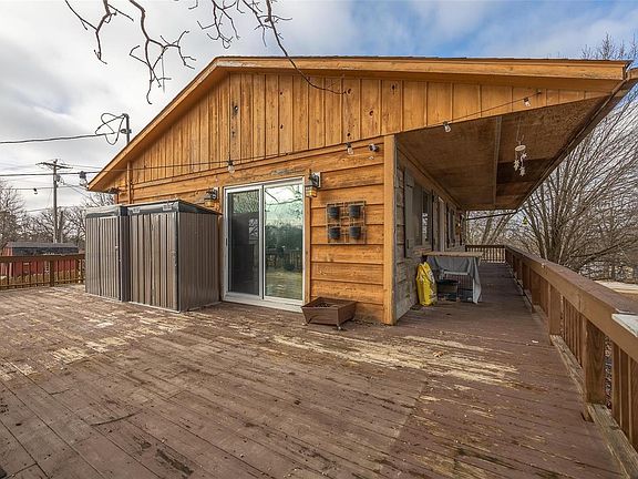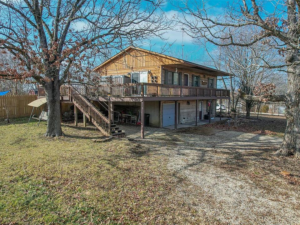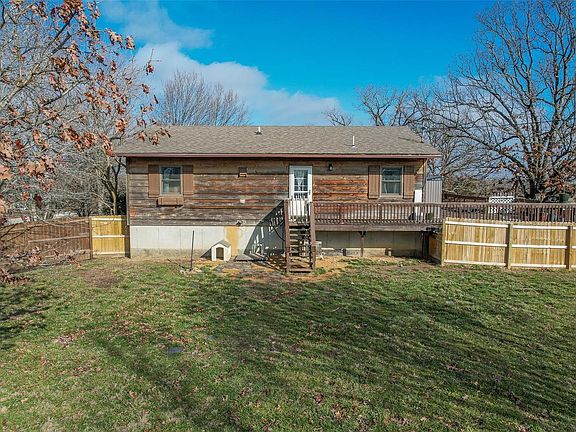 What a charming place this is! Three bedrooms and two full bathrooms on two levels, this home has a tuck under garage that takes you into the lower level where you have not only a full bath with laundry but also one big bedroom and one giant workshop room (unfinished flooring and no closet or window) Upstairs is really its own separate living space with sliding glass side entrance, wrap around porch with a TON of square footage as well as access to the fully fenced in back yard (installed 2022). Newer flooring in the two bedrooms upstairs and bright colors throughout, ample kitchen counter space as well as nook pantry over the stairs and even a coffee bar area! New Anderson windows throughout and just needing a few finishing touches to make it your own. All the recent yard additions and storage sheds convey, this home is a very short drive to Ft Wood but still outside city limits of St Robert and Waynesville. Is this the one you've been waiting for?