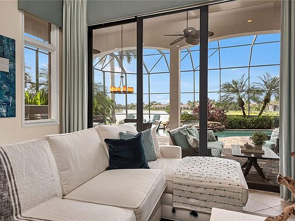 H.15870 - Oversized homesite that is almost twice the size of others in this neighborhood. As you step into the courtyard, newly completed landscape details create a fresh & welcoming feel that mirrors this home's open design & renovations that include coastal casual details. In addition to the 2018 renovation, a new roof was completed in 2019 & the exterior of the home was repainted the same year. Looking for a sun-filled home with exceptional water views and privacy? Look no further. Take advantage of the oversized pool/spa deck with brand new pavers and wide views of water & preserve, or enjoy a glass of wine at the wood-burning fire pit while a stunning Florida sunset sinks into the sky beyond. An outdoor kitchen is for the true grill master featuring Viking appliances including a warming drawer. Take advantage of the expansive space in the air-conditioned 3-car garage. Additional details include tile & wood floors, closet systems, butler's pantry, new LED recessed lighting, whole-home audio, WiFi boosters & more. Located in the award-winning community of Mediterra featuring 2 Tom Fazio golf courses, pickleball, tennis & a private beach club.