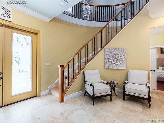 This custom built 4 bedroom 4 bath home has been converted into an incredible house for entertaining and is great for those working from home with a huge private office upstairs and accompanied by beautiful bar with several TV's. Home has a large eat in kitchen with an adjacent Living Room with a built in entertainment center that will hold over an 100'' inch TV. Master bedroom is massive and has a sitting area or another office. The outdoor space has a lanai with a summer kitchen and beautiful stone work that frames out the bar with granite counter tops and a TV and speakers for entertaining or relaxing by the pool w/spa and rock waterfall. This is one of the bigger estate homes in River Ridge at over 4100 sq feet.