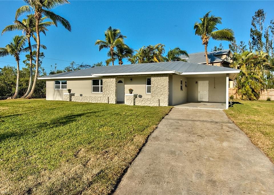 CRAZY Price for GULF ACCESS west of 41 in Fort Myers !!! Look at that price -- are you kidding me?? Located in a secluded and peaceful neighborhood west of Rt 41 in South Fort Myers. The metal roof was installed in 2015, and everything else in the home is new in 2023 -- A/C unit, appliances, cabinets, counter-tops, you name it and its brand new. Enjoy the serenity of this beautiful, coconut palm lined lot with gulf access, john-boat/jet-ski lift, captain's launch, and fish-cleaning station. Catch snook, tarpon, and more in your canal, or just enjoy the peace and quiet this stunning property offers. Picturesquely located on a 0.27-acre lot just minutes from I-75, this 3BR/2BA, 1,196sqft property provides a leisurely lifestyle with an array of major nearby conveniences. Bursting with tropical greenery, and lovely canal views. Wide enough for a boat to maneuver, the canal leads directly to Mullock Creek, Rocky Bay, and finally into the sparkling waters of the Gulf of Mexico. Take advantage of this rare opportunity to own a canal front property in one of Fort Myers’ most coveted communities.
