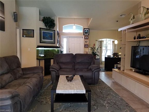 Must see this well maintained pool home! As soon as you walk through the front door, you will be looking out to a complete outdoor oasis. The 1,200 sq ft outdoor living area offers a heated pool and spa that was added in 2016 with spacious amount of entertaining room including a bar area. Fenced in yard with lush landscaping. Gravel area to the side of the driveway allowing the perfect spot to park your boat. Split floor plan. The kitchen offers stainless steel appliances, large pantry, tons of storage and breakfast bar overlooking the dining room. Formal sitting area. Vaulted ceilings. Spacious master en suite opens up to the outdoor area, has a large walk in closet, over sized shower and dual vanities. Laundry room. Close proximity to 41, I-75, GCTC, FGCU, RSW, Coconut Pointe, beaches and much more. All of this and no HOA dues!