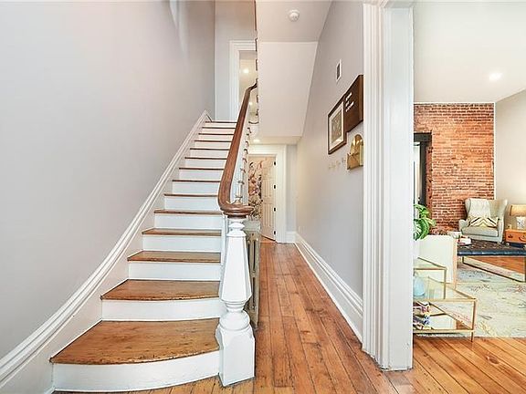 A thoughtful & extensive renovation created the unique space in this classic row home. Less than a block from Butler St, the reinvigorated façade w/its locally made double front doors & transom, beckons you enter. Inside are soaring ceilings, stunning original pine floors (1st&2nd fl) & all the modern amenities you'd expect in an urban oasis. The living room has a decorative fireplace, original trim, exposed brick & was opened, in a nod to Pittsburgh's industrial past, w/a large steel beam to the kitchen/dining area. A bespoke bar, w/2 beverage coolers, sits opposite the dining area w/its modern chandelier. The kitchen features extensive, custom-made Amish cabinetry, marble counter tops & stainless appliances. Off the kitchen is a deck, stone patio, pet-friendly faux turf area & garage. The huge master suite has a walk-in-closet & gorgeous bath w/a large shower & double sink vanity. A spacious 2nd bedroom has multiple closets. The 3rd bedroom has a French Quarter-like attached balcony.