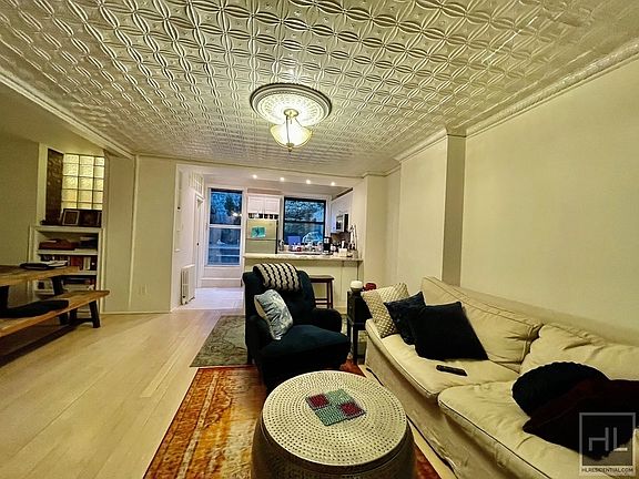 A gorgeous 1br with on a tree lined block 2 blocks from Ft Greene park. This home has a private patio and shared furnished back yard. The unit has details like tin ceiling and decorative stone mantles and washer dryer in the basement. The chefs kitchen has amazing stone on the breakfast bar that allows you to have 3 bar stools. The living room can fit a full living room set and work desk The separate dinning room area allow you to have a 6 person table. The bedroom modern pocket doors. in the bedroom you can fit a king size bed, full bedroom set. The bedroom also has his and hers closets. You will be 2 blocks from Ft Greene park. You are surrounded by restaurants boutiques and much more. Laundry in the basement Storage space available for $100 per month
