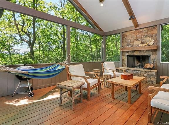 Lovely mountain home with good yr round mountain views and quiet wooded setting with "end of the road" privacy. Spacious family/dining room opens to a composite deck for enjoying the views. Formal living room has large stone fireplace (with gas starter), large window to take in the view and opens up to screen porch with (gas starter) wood burning fireplace. Unfinished basement with large workshop plus add'l area that could be finished for a variety of uses. This is your perfect mountain retreat!