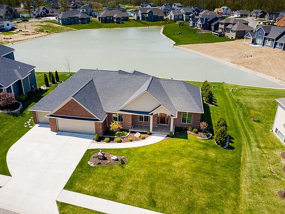 Welcome to this distinctive quality Buescher built ranch in prestigious Whisper Rock. We are confident you will find this to be one of the most pristine properties on the market in Allen County. Sitting on a gorgeous cul-de-sac pond lot in the heart of NWAC school district, this home has an abundance of quality features and extras. As you enter the home, you will notice a den to the left with a glass door entry and as you pass thru the spacious foyer you are greeted by an open GR-kitchen area with lots of windows for pond views. All rooms to the rear of this home offer the beautiful pond views. The superb white Amish (Zehr) kitchen wows you with a large center island with quartz tops, Frigidaire Gallery stainless appliances and a fantastic walk-in pantry w/coffee bar area. Off the kitchen is a cozy sunroom and tucked away work-area for the spouse's business planning needs. The private en suite is highlighted by a his and hers bath with shared walk in tiled shower and a very large walk-in closet. To further compliment the home, you have a very expansive walk-in storage closet and mudroom area with coat cubbies as you enter from the garage plus a convenient half bath and spacious laundry room with an in-cabinet laundry sink and long folding counter. Sound and security systems further enhance the insides of this property while on the outside enjoy the sought after covered rear porch and in-ground sprinklers. This home is unique and impeccably maintained. Come see for yourself!