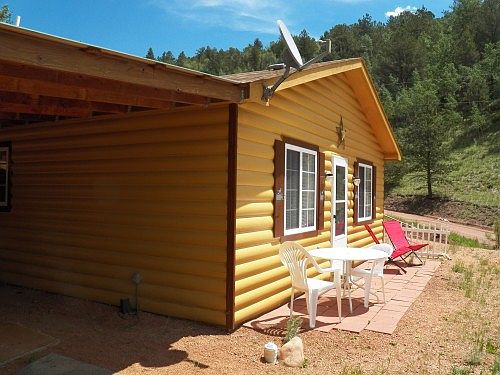 Charming log sided cabin located in a quiet, tranquil neighborhood in Rainbow Valley. Enjoy peaceful, leisurely strolls as this is a low traffic area and keep an eye out for the abundant wildlife that frequents the area. The neighbors here (although few) are very cordial. If you're done relaxing for the day it's a quick, easy drive to casinos in Cripple Creek or restaurants and shopping in Divide and Woodland Park. The home has been beautifully maintained to include new exterior paint in 2013 by Zen Painting. The interior has also been painted and new vinyl flooring installed. The floor plan is open and spacious. There is a large covered carport for parking and a storage shed for outdoor items. The yard is partially landscaped and the views are incredible. This is the perfect place to leave all of your worries and stress behind.