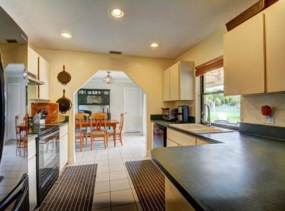 Open, bright and spacious 3 bedroom 2 bath pool home on huge fully fenced lot. Kitchen opens to family room and dining area. Huge living room or great room. Large master bedroom with walk-in closet. Tile throughout main living area; quality laminate in master bedroom and carpet in other bedrooms. Dining area and family room have sliding door walk-out to covered porch, huge patio; 30'x15' pool and massive .34 acre fenced yard. Roof 2008; AC 2012; Water heater 2015. Quiet neighborhood. No HOA. Great location with easy access to schools; shopping; beaches and highways.