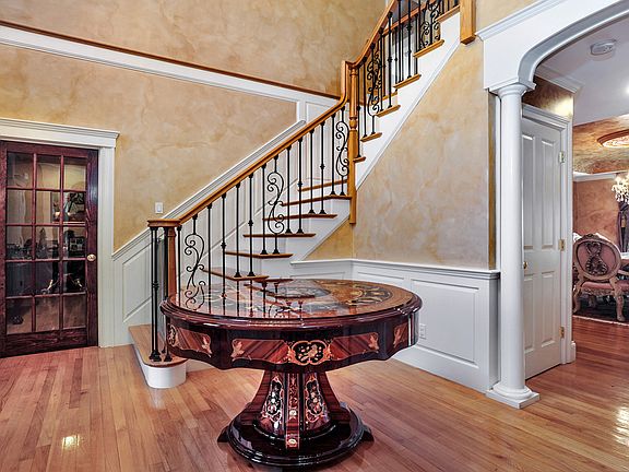 A Must See! Spectacular 5 bdrm home in a private setting including beautifully landscaped yard with patios, outdoor stone fireplace, walk in resort like pool/spa and your own slide. The kitchen features sub-zero refrigerator, gas cooking and granite counters with breakfast bar, which opens wide to a spacious family room with cathedral ceilings. The first floor includes an elegant dining room, beautiful entry foyer with a formal living room on one side and an office/library w/built in cherry book shelves, an added bonus is a spacious 1st floor bedroom. The 2nd floor features 3 additional bedrooms plus a master bedroom suite including sitting room. The 3rd floor is currently used as a spacious walk in closet/dressing room! The basement offers a family room/ play area and exercise room. Also there is plenty of additional space for storage and includes a cedar closet. *** Public Open Houses to start first weekend in August***