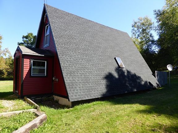 Great out of the way A frame home on 1.8+/- acres. 1 bedroom, 3/4 bath home, with open floor plan living room/dining room and kitchen with breakfast bar, that would make a great getaway. Also has a very nice 2 car detached garage. Seller will contribute up to 3% in closing costs, at time of closing.