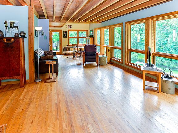 Nestled in the Foothills of the Appalachian Mtns on 27 acres, this one of a kind architecturally-designed home is a private retreat. Included are two homes & a studio. W/woods for hunting, pasture for horses, creek, & a pond the possibilities are endless.