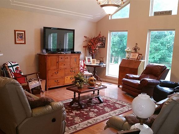 As you enter this home, you will be astonished with the large open living room featuring soaring ceilings, a fireplace, and solid wood floors. The large windows offer a picturesque view with plenty of natural light. The kitchen boasts solid wood cabinets and lots of storage. The laundry room offers a laundry sink and extra bathroom. This home has 3 bedrooms, 2 1/2 bathrooms, and an attached 2 car garage. You will find plenty of privacy as your roam on or farm the rolling five acres of land. The property comes equipped with fencing and a barn. Bring your family and enjoy country living at its best!